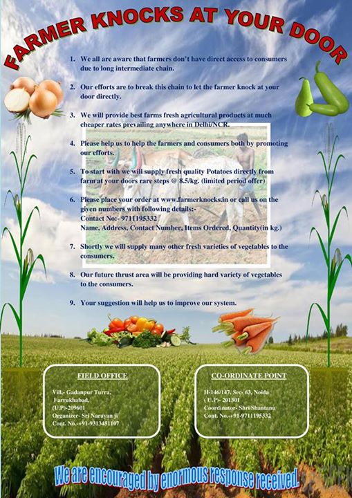To start with we will supply fresh quality Potatoes directly from farm at your doors rare steps @ 8.5/kg.